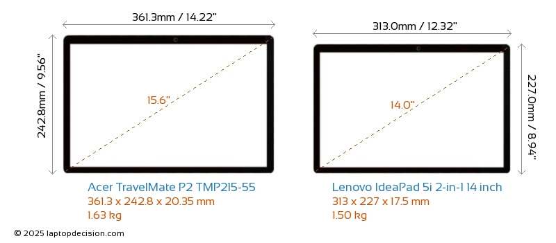 AudioanschlussBeide, TravelMate P2 TMP215-55 und IdeaPad 5i 2-in-1 14 inch, sind mit einem 3,5-mm-Audioanschluss ausgestattet, der eine nahtlose Verbindung zu Kopfhörern und Lautsprechern ermöglicht.