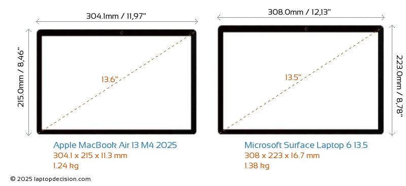 AudioanschlussBeide, MacBook Air 13 M4 2025 und Surface Laptop 6 13.5, sind mit einem 3,5-mm-Audioanschluss ausgestattet, der eine nahtlose Verbindung zu Kopfhörern und Lautsprechern ermöglicht.