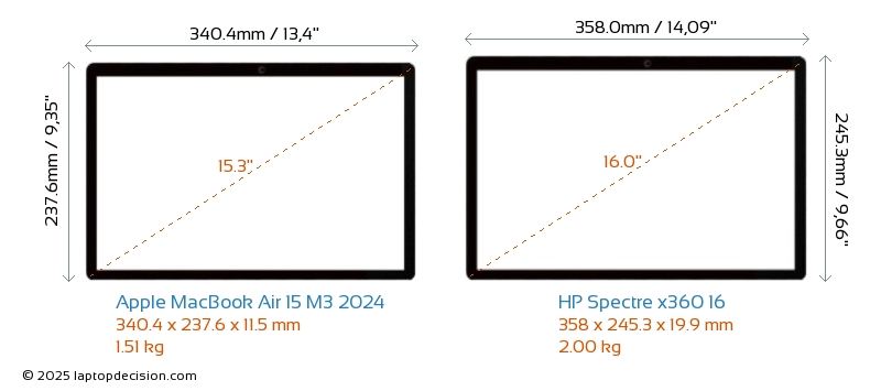 AudioanschlussBeide, MacBook Air 15 M3 2024 und Spectre x360 16, sind mit einem 3,5-mm-Audioanschluss ausgestattet, der eine nahtlose Verbindung zu Kopfhörern und Lautsprechern ermöglicht.