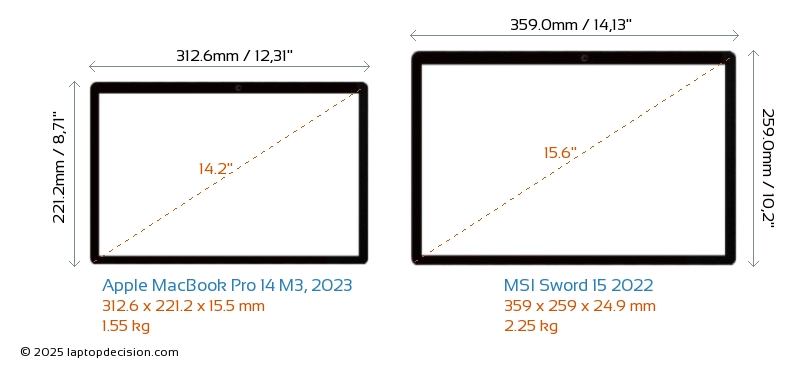 AudioanschlussBeide, MacBook Pro 14 M3, 2023 und Sword 15 2022, sind mit einem 3,5-mm-Audioanschluss ausgestattet, der eine nahtlose Verbindung zu Kopfhörern und Lautsprechern ermöglicht.