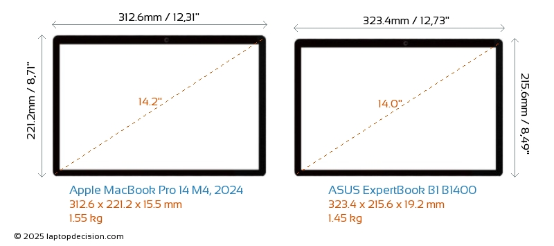ThunderboltBeide, MacBook Pro 14 M4, 2024 und ExpertBook B1 B1400, sind mit Thunderbolt 4-Ports ausgestattet.