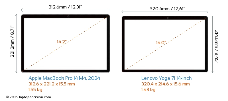 ThunderboltBeide, MacBook Pro 14 M4, 2024 und Yoga 7i 14-inch, sind mit Thunderbolt 4-Ports ausgestattet.