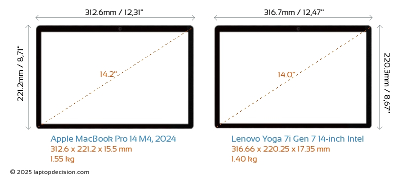 ThunderboltBeide, MacBook Pro 14 M4, 2024 und Yoga 7i Gen 7 14-inch Intel, sind mit Thunderbolt 4-Ports ausgestattet.