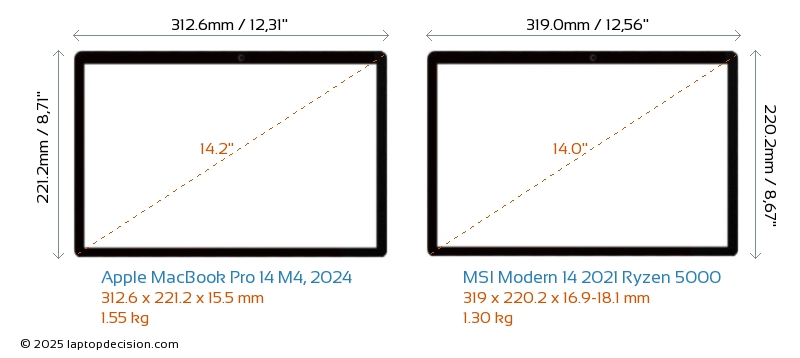 SD-KartenleserBeide, MacBook Pro 14 M4, 2024 und Modern 14 2021 Ryzen 5000, sind mit einem SD-Kartenleser ausgestattet, um einen einfachen Zugriff auf Speicherkarten zu ermöglichen.
