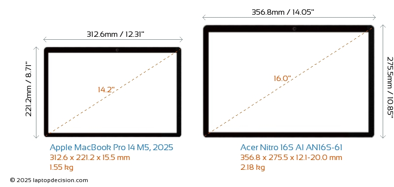 SD-KartenleserBeide, MacBook Pro 14 M5, 2025 und Nitro 16S AI AN16S-61, sind mit einem SD-Kartenleser ausgestattet, um einen einfachen Zugriff auf Speicherkarten zu ermöglichen.