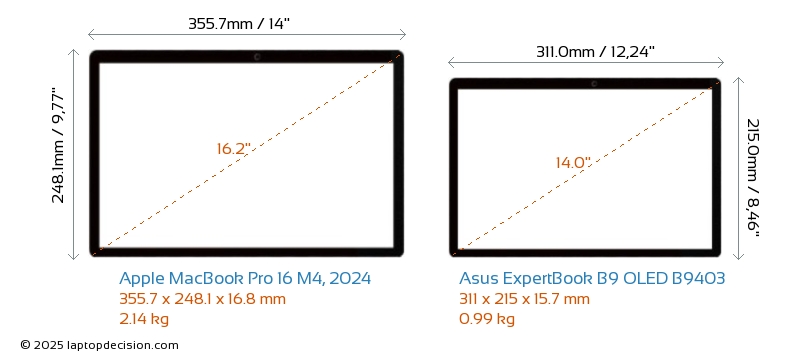 AudioanschlussBeide, MacBook Pro 16 M4, 2024 und ExpertBook B9 OLED B9403, sind mit einem 3,5-mm-Audioanschluss ausgestattet, der eine nahtlose Verbindung zu Kopfhörern und Lautsprechern ermöglicht.