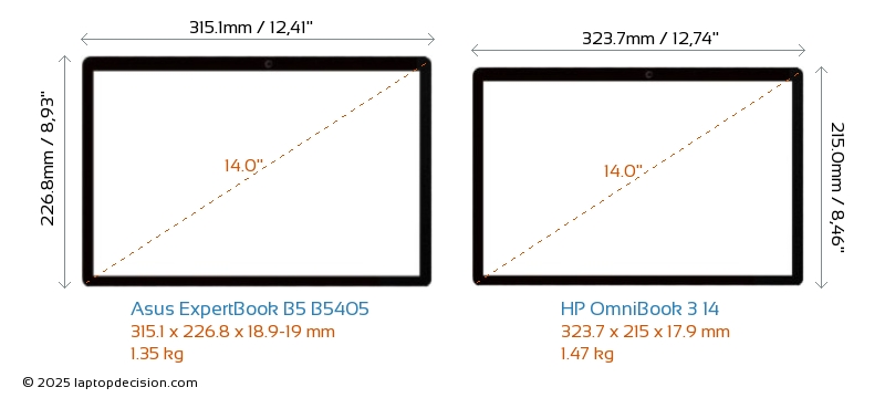 USBBeide ExpertBook B5 B5405 und OmniBook 3 14 verfügen über 2x USB 3.2 USB-A-Ports.Beide ExpertBook B5 B5405 und OmniBook 3 14 haben USB-Type-C-Ports. ExpertBook B5 B5405 hat 2x USB 4.0 USB Type-C-Ports, während OmniBook 3 14 1x USB 3.2 USB Type-C-Ports hat.