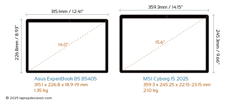 HDMIBeide, ExpertBook B5 B5405 und Cyborg 15 2025, verfügen über einen HDMI-Port (1x HDMI 2.1) zum Anschluss an externe Monitore.