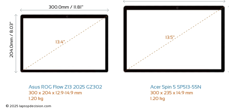 ThunderboltSpin 5 SP513-55N ist mit einem Thunderbolt 4-Port ausgestattet. ROG Flow Z13 2025 GZ302 hat keinen Thunderbolt-Port.