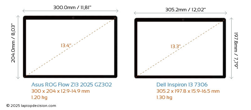 ThunderboltInspiron 13 7306 ist mit einem Thunderbolt 4-Port ausgestattet. ROG Flow Z13 2025 GZ302 hat keinen Thunderbolt-Port.