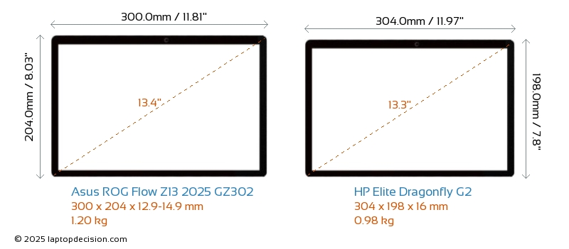 USBBeide ROG Flow Z13 2025 GZ302 und Elite Dragonfly G2 verfügen über 1x USB 3.2 USB-A-Ports.Beide ROG Flow Z13 2025 GZ302 und Elite Dragonfly G2 verfügen über 2x USB 4.0 USB-Type-C-Ports.