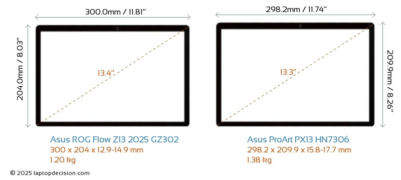 HDMIBeide, ROG Flow Z13 2025 GZ302 und ProArt PX13 HN7306, verfügen über einen HDMI-Port (1x HDMI 2.1) zum Anschluss an externe Monitore.