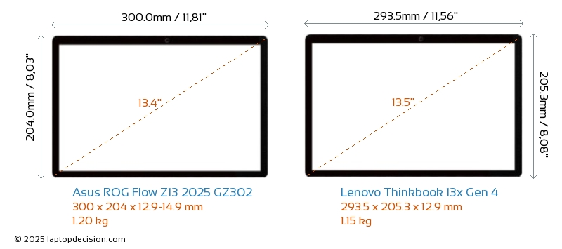 HDMI ROG Flow Z13 2025 GZ302 verfügt über einen HDMI-Port (1x HDMI 2.1) zum Anschluss an externe Monitore. Thinkbook 13x Gen 4 hat keinen HDMI-Port.