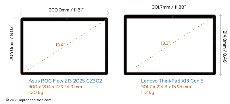 Thunderbolt ThinkPad X13 Gen 5 ist mit einem Thunderbolt 4-Port ausgestattet. ROG Flow Z13 2025 GZ302 hat keinen Thunderbolt-Port.
