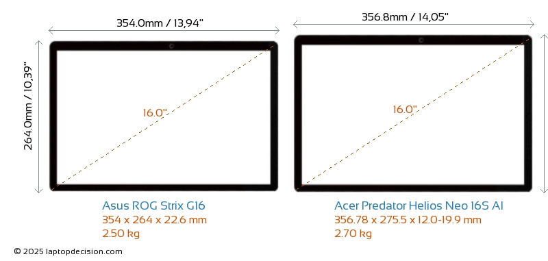 HDMIBeide, ROG Strix G16 und Predator Helios Neo 16S AI, verfügen über einen HDMI-Port (1x HDMI 2.1) zum Anschluss an externe Monitore.