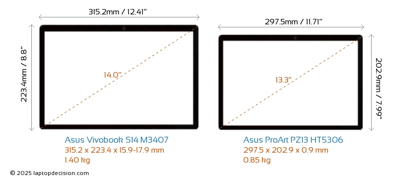 HDMI Vivobook S14 M3407 verfügt über einen HDMI-Port (1x HDMI 2.1) zum Anschluss an externe Monitore. ProArt PZ13 HT5306 hat keinen HDMI-Port.
