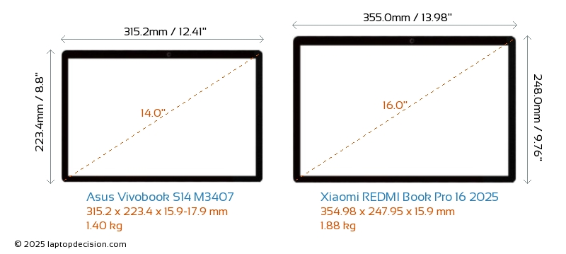 HDMIBeide, Vivobook S14 M3407 und REDMI Book Pro 16 2025, verfügen über einen HDMI-Port (1x HDMI 2.1) zum Anschluss an externe Monitore.