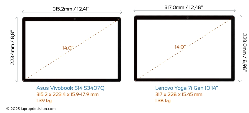 USBBeide Vivobook S14 S3407Q und Yoga 7i Gen 10 14" haben USB-A-Ports. Vivobook S14 S3407Q hat 2x USB 3.2 USB-A-Ports, während Yoga 7i Gen 10 14" 1x USB 3.2 USB-A-Ports hat.Beide Vivobook S14 S3407Q und Yoga 7i Gen 10 14" verfügen über 2x USB 4.0 USB-Type-C-Ports.