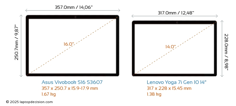 USBBeide Vivobook S16 S3607 und Yoga 7i Gen 10 14" haben USB-A-Ports. Vivobook S16 S3607 hat 2x USB 3.2 USB-A-Ports, während Yoga 7i Gen 10 14" 1x USB 3.2 USB-A-Ports hat.Beide Vivobook S16 S3607 und Yoga 7i Gen 10 14" verfügen über 2x USB 4.0 USB-Type-C-Ports.