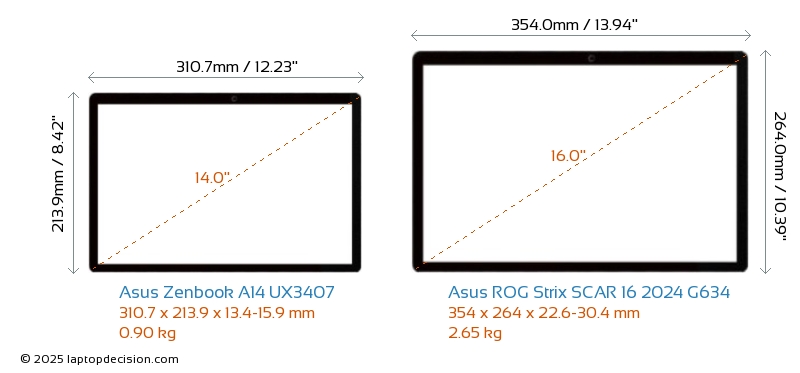 HDMIBeide, Zenbook A14 UX3407 und ROG Strix SCAR 16 2024 G634, verfügen über einen HDMI-Port (1x HDMI 2.1) zum Anschluss an externe Monitore.