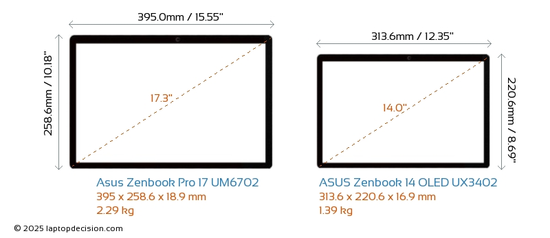 ThunderboltZenbook 14 OLED UX3402 ist mit einem Thunderbolt 4-Port ausgestattet. Zenbook Pro 17 UM6702 hat keinen Thunderbolt-Port.