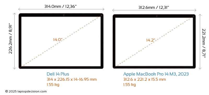 ThunderboltBeide, 14 Plus und MacBook Pro 14 M3, 2023, sind mit Thunderbolt 4-Ports ausgestattet.