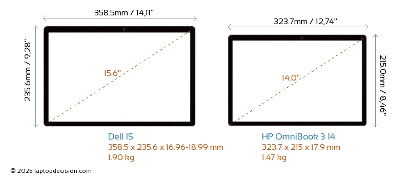 USBBeide 15 und OmniBook 3 14 verfügen über 2x USB 3.2 USB-A-Ports.Beide 15 und OmniBook 3 14 verfügen über 1x USB 3.2 USB-Type-C-Ports.