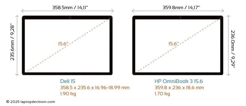 USBBeide 15 und OmniBook 3 15.6 verfügen über 2x USB 3.2 USB-A-Ports.Beide 15 und OmniBook 3 15.6 verfügen über 1x USB 3.2 USB-Type-C-Ports.