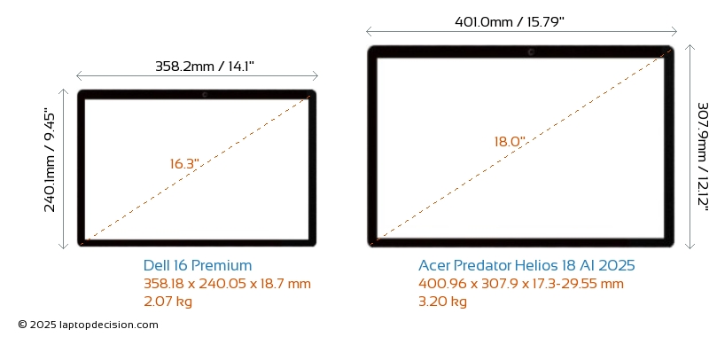 HDMI Predator Helios 18 AI 2025 verfügt über einen HDMI-Port (1x HDMI 2.1) zum Anschluss an externe Monitore. 16 Premium hat keinen HDMI-Port.