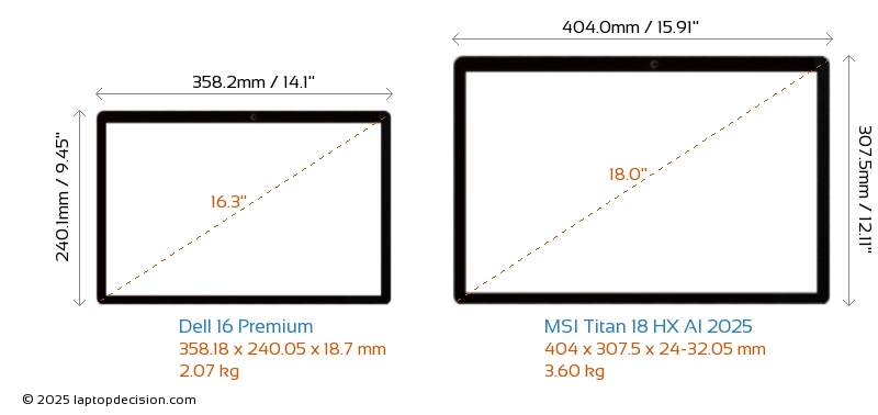 HDMI Titan 18 HX AI 2025 verfügt über einen HDMI-Port (1x HDMI 2.1) zum Anschluss an externe Monitore. 16 Premium hat keinen HDMI-Port.