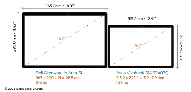HDMIBeide, Alienware 16 Area-51 und Vivobook S14 S3407Q, verfügen über einen HDMI-Port (1x HDMI 2.1) zum Anschluss an externe Monitore.