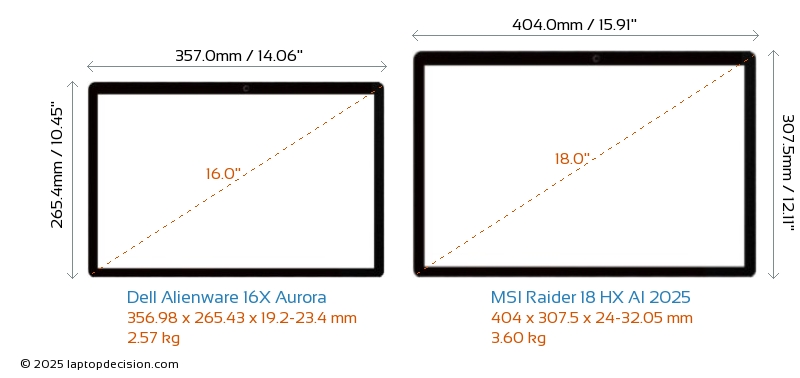 HDMIBeide, Alienware 16X Aurora und Raider 18 HX AI 2025, verfügen über einen HDMI-Port (1x HDMI 2.1) zum Anschluss an externe Monitore.