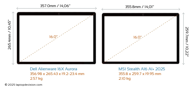 ThunderboltBeide, Alienware 16X Aurora und Stealth A16 AI+ 2025, sind mit Thunderbolt 4-Ports ausgestattet.