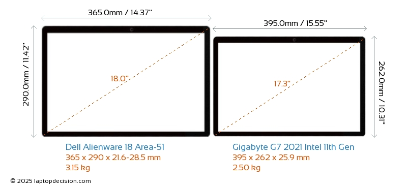 Thunderbolt Alienware 18 Area-51 ist mit einem Thunderbolt 5-Port ausgestattet. G7 2021 Intel 11th Gen hat keinen Thunderbolt-Port.