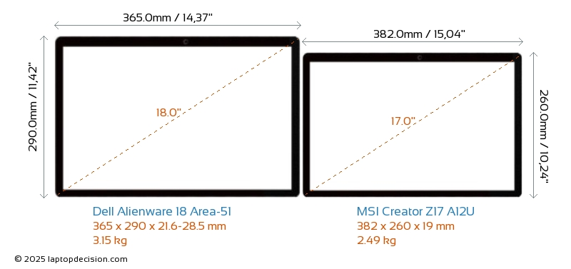 HDMIBeide, Alienware 18 Area-51 und Creator Z17 A12U, verfügen über einen HDMI-Port (1x HDMI 2.1) zum Anschluss an externe Monitore.