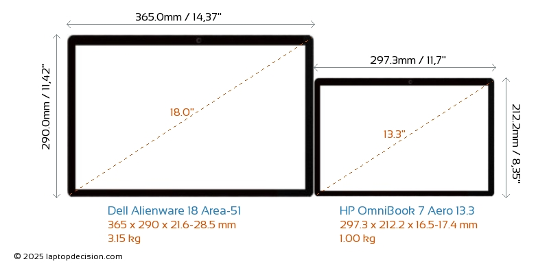 HDMIBeide, Alienware 18 Area-51 und OmniBook 7 Aero 13.3 , verfügen über einen HDMI-Port (1x HDMI 2.1) zum Anschluss an externe Monitore.