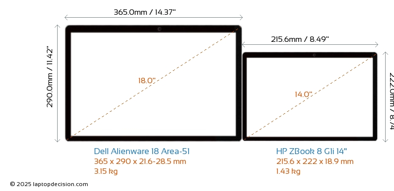 ThunderboltBeide, Alienware 18 Area-51 und ZBook 8 G1i 14", verfügen über Thunderbolt-Ports. Alienware 18 Area-51 hat Thunderbolt 5, während ZBook 8 G1i 14" Thunderbolt 4 hat.