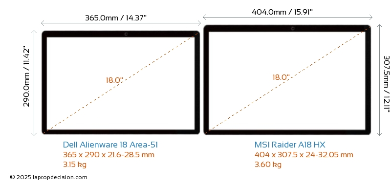 HDMIBeide, Alienware 18 Area-51 und Raider A18 HX, verfügen über einen HDMI-Port (1x HDMI 2.1) zum Anschluss an externe Monitore.