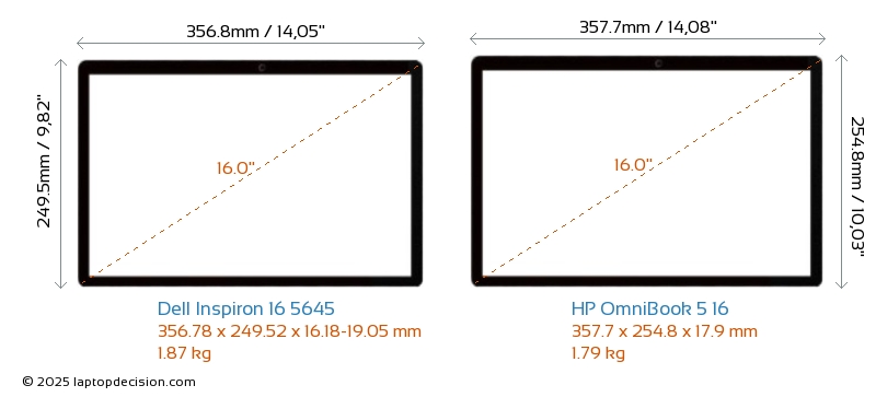 HDMIBeide, Inspiron 16 5645 und OmniBook 5 16 , verfügen über einen HDMI-Port. Inspiron 16 5645 bietet 1x HDMI 1.4, während OmniBook 5 16 1x HDMI 2.1 bietet.