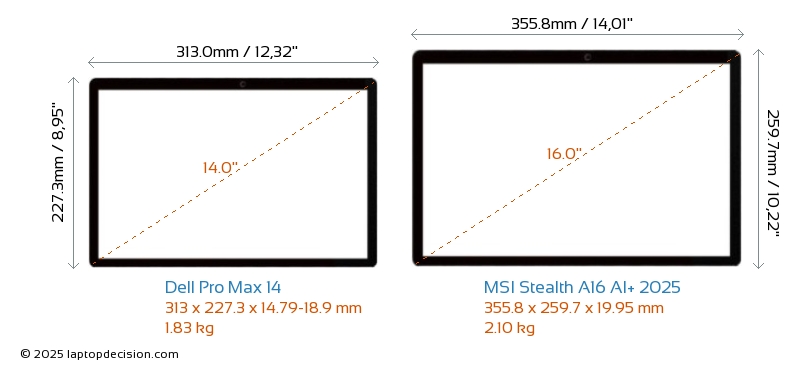 HDMIBeide, Pro Max 14 und Stealth A16 AI+ 2025, verfügen über einen HDMI-Port (1x HDMI 2.1) zum Anschluss an externe Monitore.