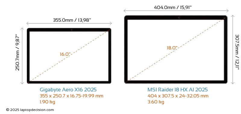 HDMIBeide, Aero X16 2025 und Raider 18 HX AI 2025, verfügen über einen HDMI-Port (1x HDMI 2.1) zum Anschluss an externe Monitore.