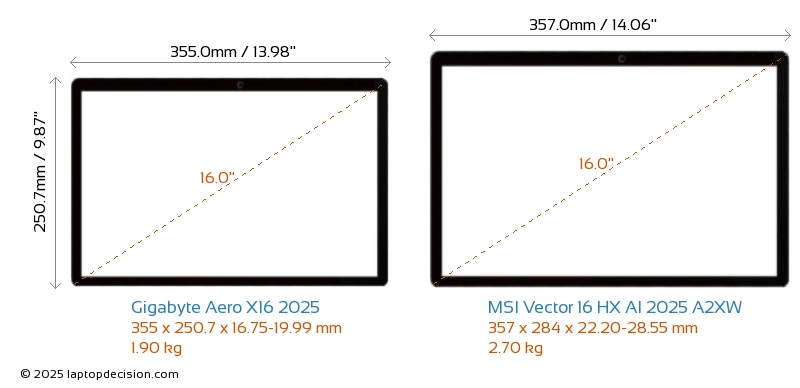 HDMIBeide, Aero X16 2025 und Vector 16 HX AI 2025 A2XW, verfügen über einen HDMI-Port (1x HDMI 2.1) zum Anschluss an externe Monitore.
