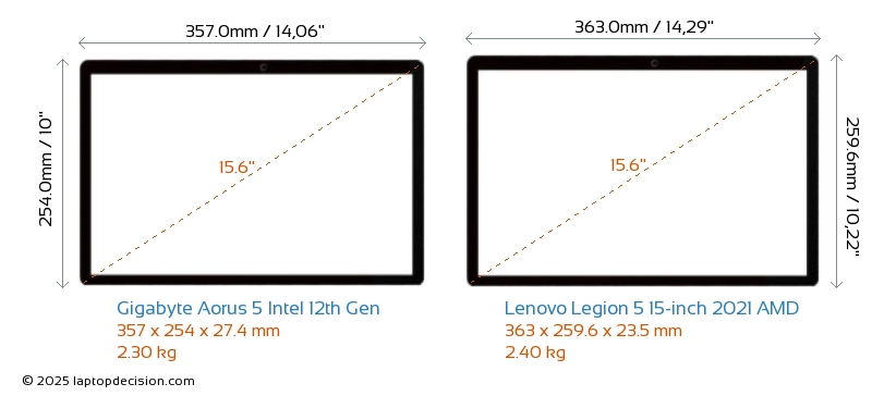 HDMIBeide, Aorus 5 Intel 12th Gen und Legion 5 15-inch 2021 AMD, verfügen über einen HDMI-Port (1x HDMI 2.1) zum Anschluss an externe Monitore.