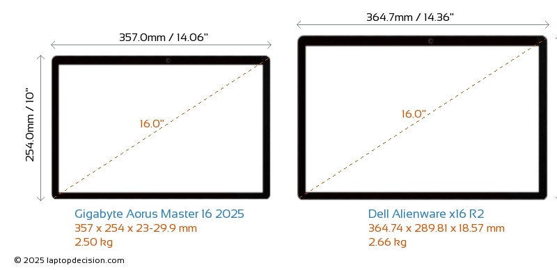 ThunderboltBeide, Aorus Master 16 2025 und Alienware x16 R2, verfügen über Thunderbolt-Ports. Aorus Master 16 2025 hat Thunderbolt 5, während Alienware x16 R2 Thunderbolt 4 hat.