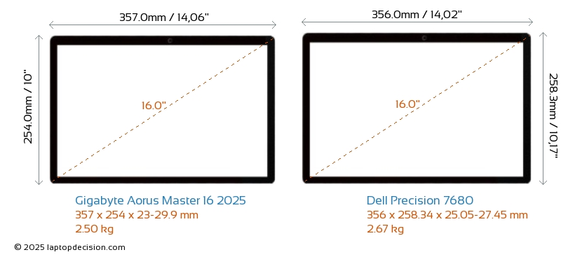 HDMIBeide, Aorus Master 16 2025 und Precision 7680, verfügen über einen HDMI-Port (1x HDMI 2.1) zum Anschluss an externe Monitore.
