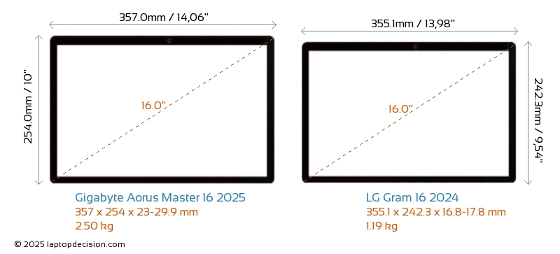 ThunderboltBeide, Aorus Master 16 2025 und Gram 16 2024, verfügen über Thunderbolt-Ports. Aorus Master 16 2025 hat Thunderbolt 5, während Gram 16 2024 Thunderbolt 4 hat.
