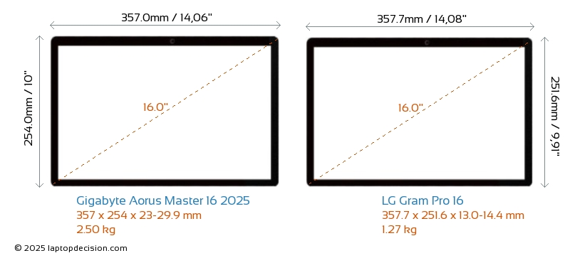 Gigabyte Aorus Master 16 2025 vs LG Gram Pro 16 Vergleich