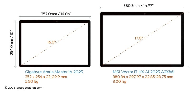 ThunderboltBeide, Aorus Master 16 2025 und Vector 17 HX AI 2025 A2XWJ, sind mit Thunderbolt 5-Ports ausgestattet.