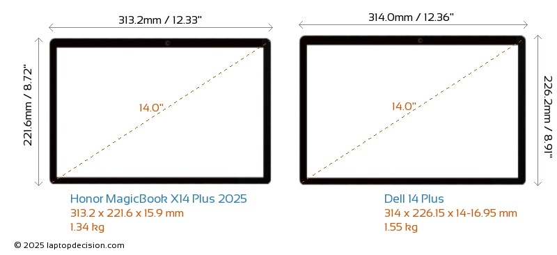 HDMIBeide, MagicBook X14 Plus 2025 und 14 Plus, verfügen über einen HDMI-Port. MagicBook X14 Plus 2025 bietet 1x HDMI 1.4, während 14 Plus 1x HDMI 2.1 bietet.