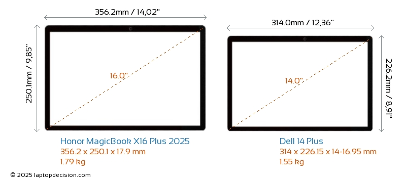HDMIBeide, MagicBook X16 Plus 2025 und 14 Plus, verfügen über einen HDMI-Port. MagicBook X16 Plus 2025 bietet 1x HDMI 1.4, während 14 Plus 1x HDMI 2.1 bietet.